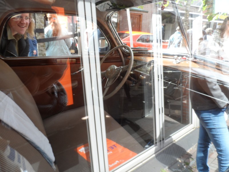 Deze keer de afdeling oliezeikerds, oftewel Engelse klassiekers, er waren heel veel MG-B's te zien, maar slechts beperkt aantal pics daarvan gemaakt. Als eerste een Triumph Stag met V8-blok, toch iets wat je minder vaak ziet/hoort, alleen interieurfoto's buitenkant was door publiek eigenlijk niet goed te fotograferen. Een paar MG B's, de rode is uit 1968. Ik herinner me uit mijn jeugd dat rond 1970 dit type MG samen met de Triumph Spitfire vaak bij ernstige ongelukken betrokken waren op de provinciale wegen rond het dorp. Wat bijzondere Mini's, een rode Morris Mini 1000 pickup, lijkt dezelfde kleur te hebben als de Austin Seven waar mijn vader wel eens mee thuis kwam: En dan deze Mini clubman uit 1980. De clubman versies hadden een iets pittiger motor en een afwijkende grill en zijn volgens mij alleen in de jaren 80 geleverd. Hier een MG Midgett Mk III uit 1974: En dan voor mij één van de mooiste klassiekers een Jaguar E-type, in dit geval een Series Three Cabiolet met V12 blok: Nog wat Jaguar foto's: Niet haarscherp, maar dat valt ook niet mee als je achter een achterrijdende auto aanloopt om een deailfoto te maken. Schitterende kentekenverlichting: Blik op het interieur, en achterop de behaalde prestaties van 'soortgenoten': En de voorzijde ook met z'n springende jaguar op de neus, dit gaat dus om een XK150 automaat uit 1961.
